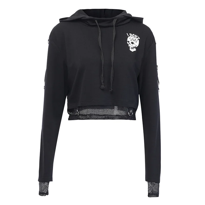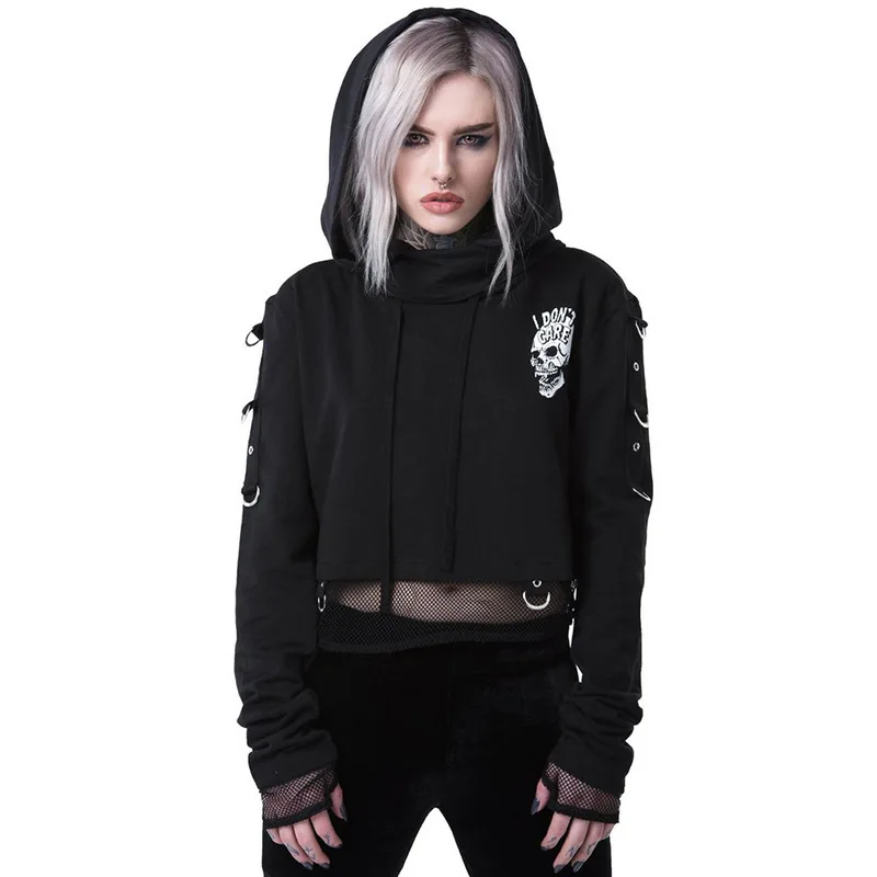 Promo JIEZUOFANG Women Tracksuit Cotton Autumn Gothic Crop Top Hoodies Streetwear Stitching Chain Non-mai