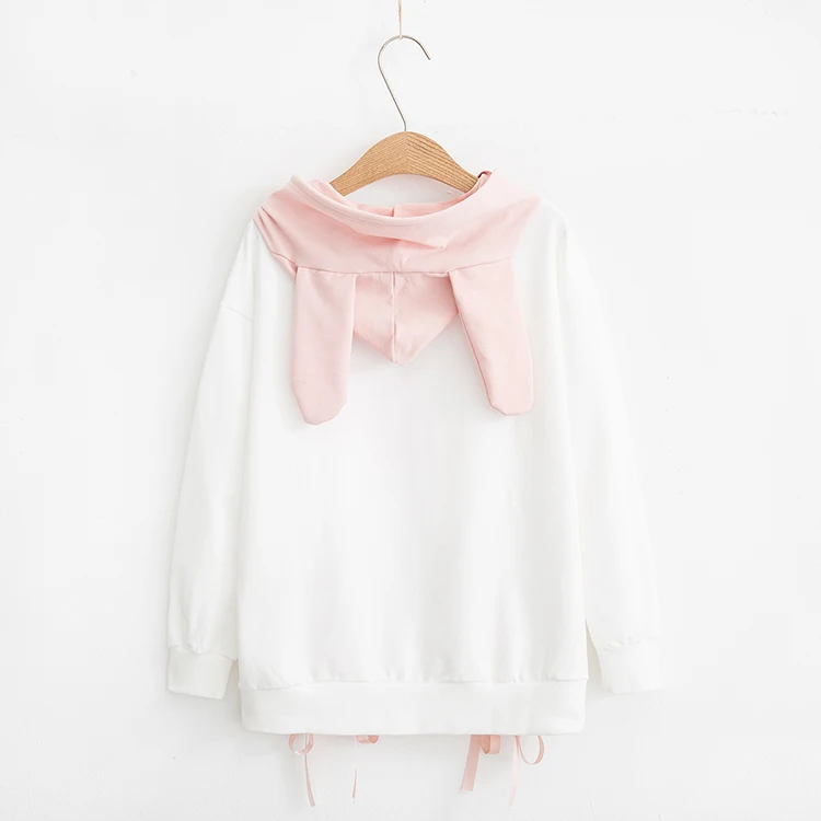 New Kawaii Ear Women Hooded Hoodies 2019 Spring Long Sleeve Lovely Pink Lolita Cute Girls Lace Up Cross