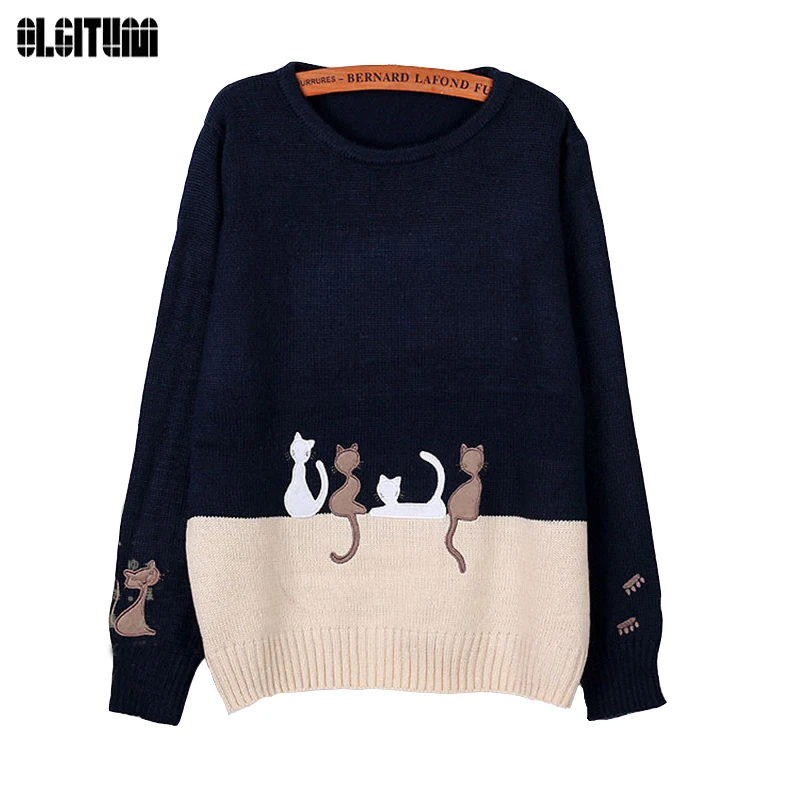 Today i want to review about 2019 New Women Sweater Autumn & Winter The Cartoon Cat Small Embroidery Knit Sweater Women Round Ne. I uncover this cool product from China Online Store, best manucafturer.