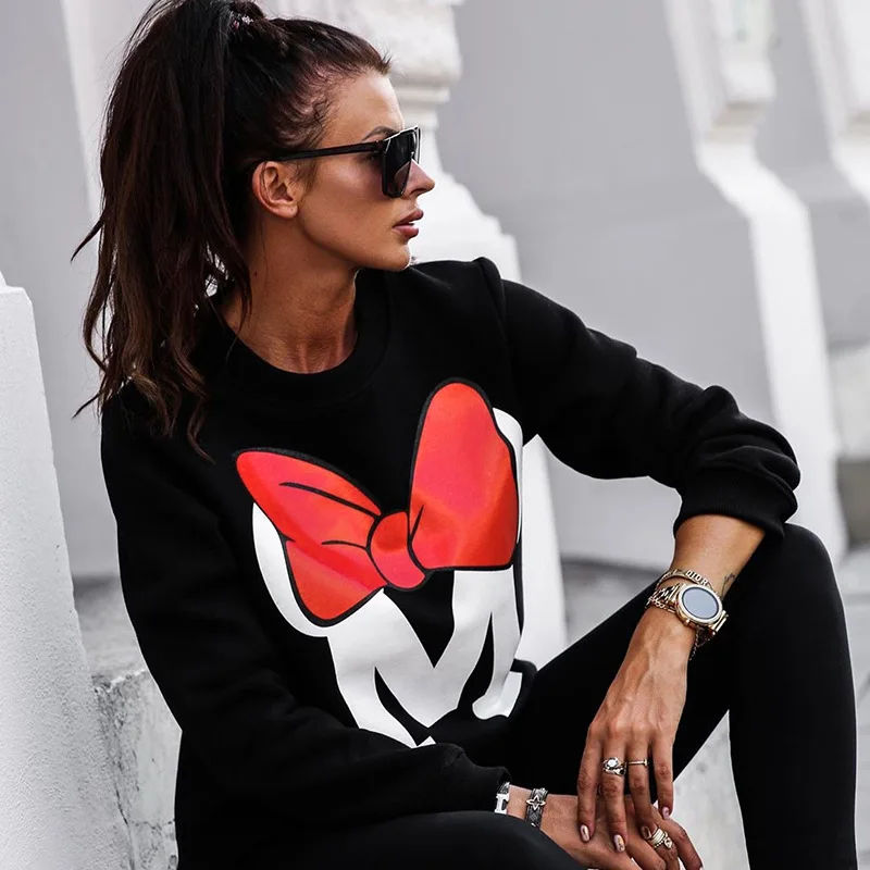 Best autumn and winter women's sweatshirt Mickey Minnie print casual sports shirt women's round neck lon