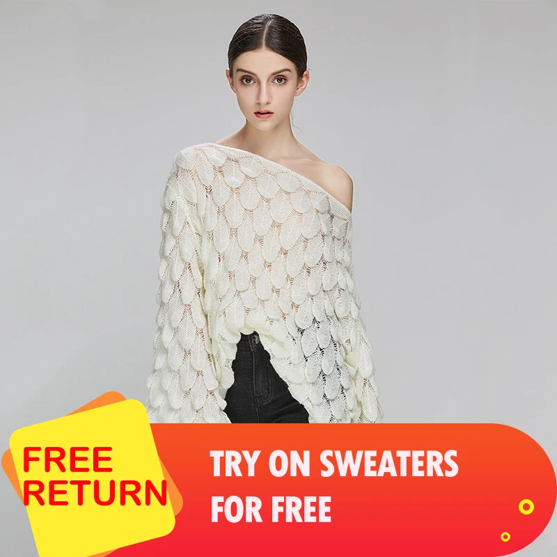 Promo adohon Elegant Sweater Women 2019 Casual Fashion Loose Women Sweaters and Pullovers Cute 3D White J